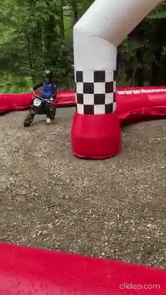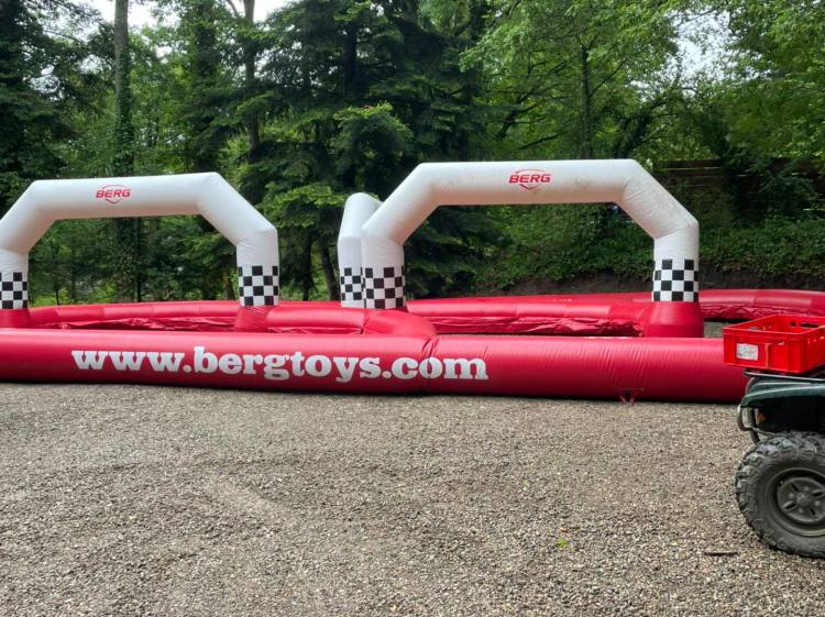 Envie de devenit un pilote? Venez faire des courses infernales sur un grand circuit gonflable de 18 mètres de long et 8 mètres de large! Passez sous l’arche en damier et franchissez la ligne d’arrivée avant vos adversaires.